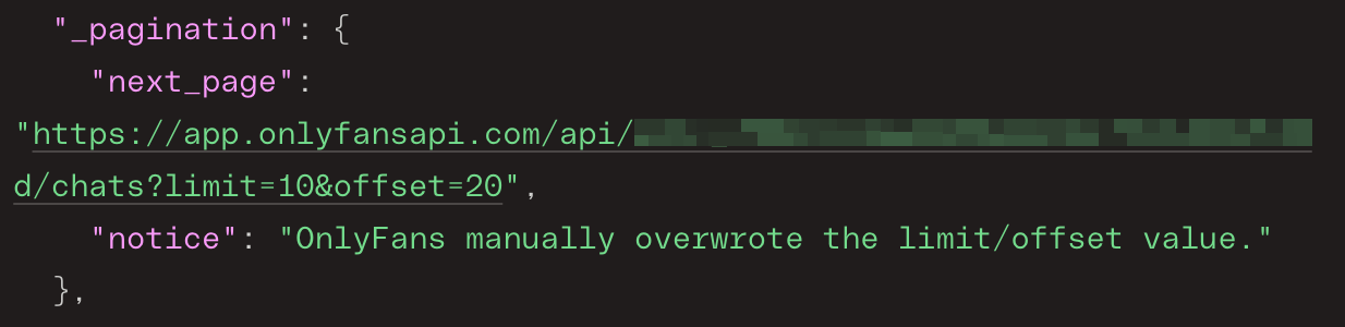 We also show a clear _pagination.notice in the response whenever OnlyFans overrides your request, so you know exactly what happened.